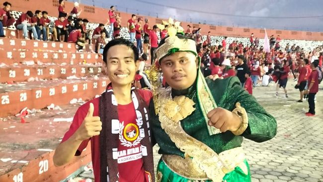 Heboh di media sosial suporter menggunakan pakaian pengantin menyaksikan laga PSM Makassar menjamu Bhayangkara FC di pekan ke-31 Liga 1 2022/2023. Pria yang bernama Iksan mengaku menggunakan busana adat pengantin Bugis tak lepas dari candaan teman soal PSM juara bakal melamar sang kekasih.