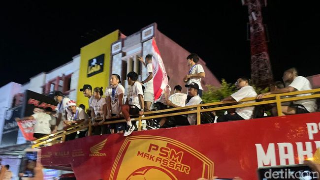 Mobil konvoi PSM juara diisi seluruh pemain seperti Wiljan Pluim, Reza Arya hingga Ramadan Sananta. Mereka melambaikan tangan kepada para suporter dan warga yang telah menunggu di sepanjang jalan.