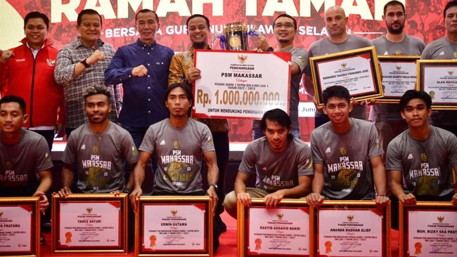 PSM Makassar mendapatkan bonus dari Pemprov Sulawesi Selatan (Sulsel) atas gelar juara Liga 1 musim 2022/2023. Bonus yang diberikan sebesar Rp 1 miliar.
