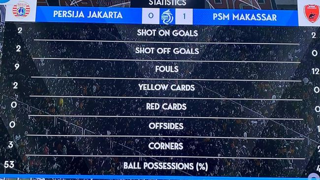 Secara penguasaan bola, Persija juga unggul dengan 53 persen ball possesion. Sedangkan PSM menguasai 47 persen ball possesion.