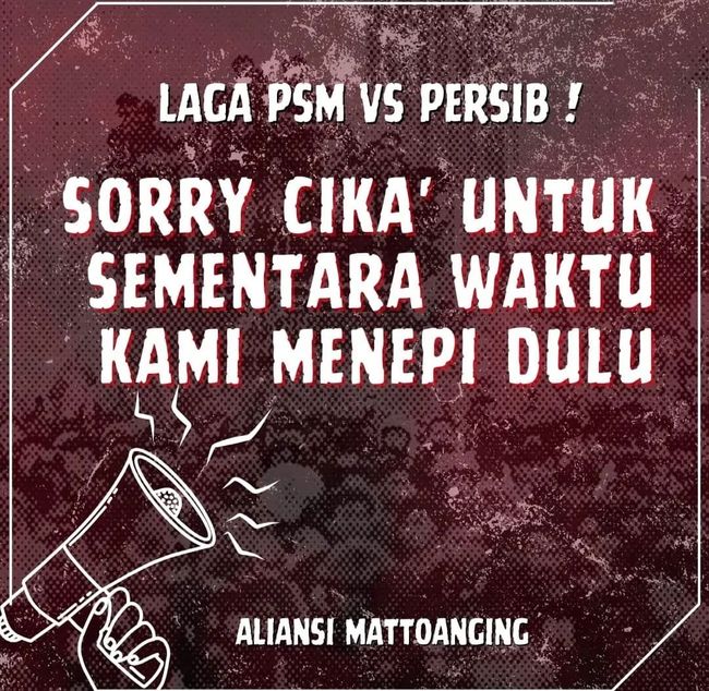 Suporter PSM Makassar yang tergabung dalam Aliansi Mattoanging memutuskan untuk menepi di laga melawan Persib Bandung. Aliansi Mattoanging tidak akan hadir mendukung PSM di stadion karena tuntutannya tidak dipenuhi manajemen.