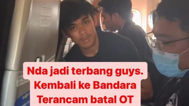 "Nda jadi terbang guys. Kembali ke bandara terancam batal OT," tulis Hardiansyah dalam caption videonya. Terlihat juga winger PSM Rizky Eka Pratama di dalam pesawat termenung menunggu.