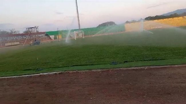 "Kita kan pakai penyiraman sprinkler itu ada 32 titik itu terpasang di pinggir lapangan. Itu yang pagi dan sore menyala untuk menyiram rumput stadion," paparnya.