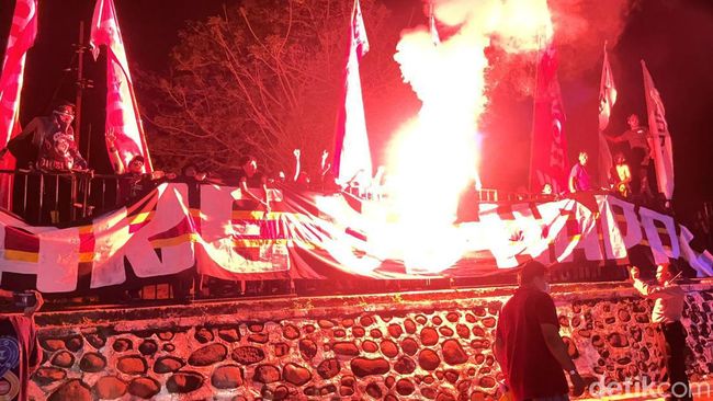 Mereka membentangkan spanduk bertuliskan "MAKE US HAPPY". Tak cukup dengan spanduk protes, suporter juga berteriak-teriak.