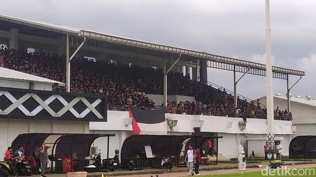 Selain di tribune, tampak beberapa suporter juga mengintip dari balik tembok stadion. Mereka rela berdesakan demi menyaksikan skuad Juku Eja latihan.