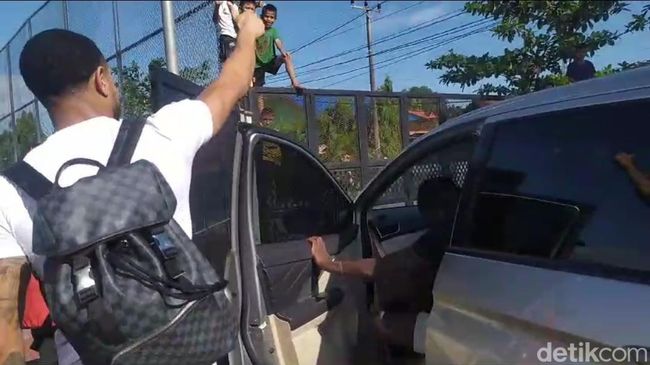 Saat turun dari mobil, Victor menyapa fans cilik PSM yang menyambutnya di pintu masuk Stadion Kalegowa. Fans cilik PSM itu meneriakkan nama Victor.