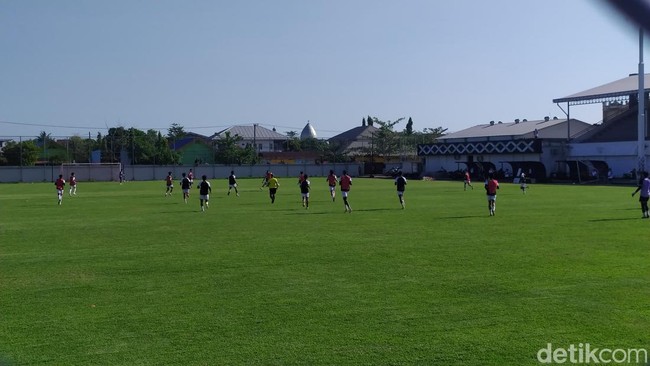 Nermin Haljeta dkk menghadapi tim dengan rompi merah yang diperkuat Hilmansyah di pos penjaga gawang. Kemudian Dimas Sukarno, Daffa Salman, dan Dzaky Asraf di lini belakang.