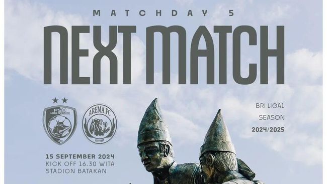 Laga antara PSM Vs Arema FC berlangsung di Stadion Batakan, Balikpapan, Minggu (15/9/2024). Kickoff dijadwalkan ada pukul 15.30 WIB atau 16.30 Wita.