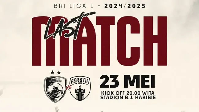 PSM Makassar Vs Persita Tangerang akan berduel di laga terakhir Liga 1 musim 2024/2025 malam ini. Informasi link live streaming laga itu bisa dilihat di bawah ini.