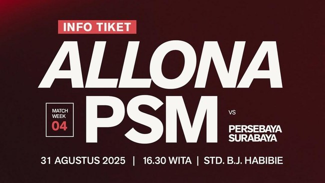 PSM Makassar akan menjamu Persebaya Surabaya dalam laga keempat Super League 2025/2026. Penjualan tiket tersebut telah dibuka oleh panpel PSM.