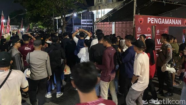 Pantauan detikSulsel di kawasan stadion Jalan Syamsu Alam Bulu, Kelurahan Lompoe Kecamatan Bacukiki, Minggu (21/9), tampak suporter mulai berdatangan. Suporter antre panjang di jalur masuk stadion.