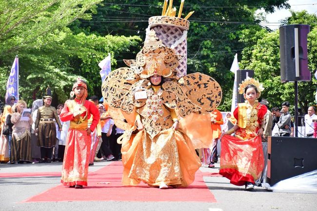 Dalam gelaran ini, ditampilkan kreativitas peserta sesuai ciri khas dan potensi masing-masing. Beberapa budaya yang tampil menonjol antara lain seni memakai pakaian khas daerah, serta berbagai kostum baik di tingkat pelajar, mahasiswa hingga kostum pegawai yang dihias dengan berbagai macam dekorasi.