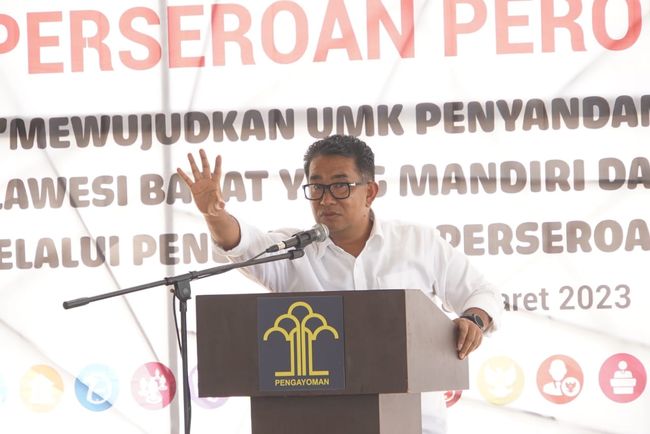 Kantor Wilayah Kementerian Hukum dan Hak Asasi Manusia (Kanwil Kemenkumham) Sulawesi Barat (Sulbar) menggelar sosialisasi pendaftaran perseroan perorangan. Kegiatan yang dibuka Pj. Gubernur Sulbar, Akmal Malik didampingi Kepala Kanwil Kemenkumham Sulbar, Parlindungan itu digelar untuk mendukung bisnis UMKM para difabel.
