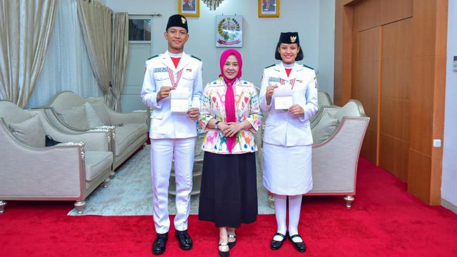 Wakil Gubernur Sulawesi Selatan (Wagub Sulsel) Fatmawati Rusdi mengapresiasi dua anggota Pasukan Pengibar Bendera Pusaka (Paskibraka) Nasional 2025 asal Sulsel, Aliah Sakira dan Nadhif Infanteri Ibha. Keduanya pun mendapat bantuan tabungan pendidikan setelah sukses bertugas dalam upacara HUT ke-80 RI di Istana Negara.