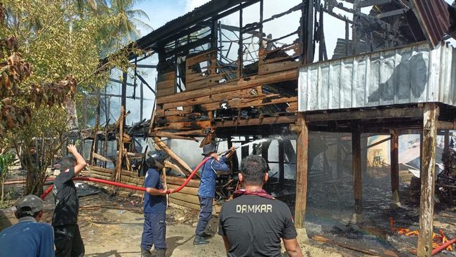 "Api kemudian menjalar ke rumah milik Maseude hingga menghabiskan dua rumah lainnya. Api cepat membesar karena 4 rumah itu semuanya rumah kayu," sambung Sukirno.