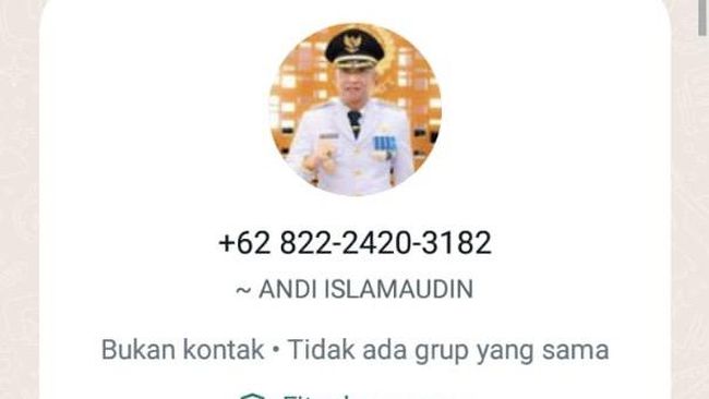"Ada yang mengatasnamakan Pj Bupati Bone di nomor WhatsApp yang memakai fotonya. Namun nomornya bukan itu," ujar Kabag Prokopim Bone Andi Rizky Pratama kepada detikSulsel, Kamis (29/2/2024).