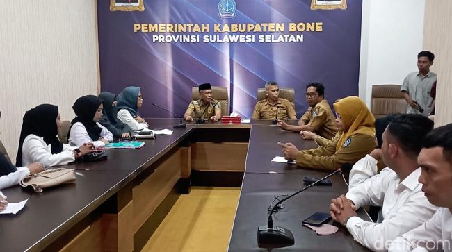 Aspirasi itu disampaikan para guru honorer di hadapan Pj Bupati Bone Andi Islamuddin di kantor Bupati Bone, Selasa (2/4). Mereka turut menyoroti Pemkab Bone tidak menerima formasi guru PPPK tahun ini.