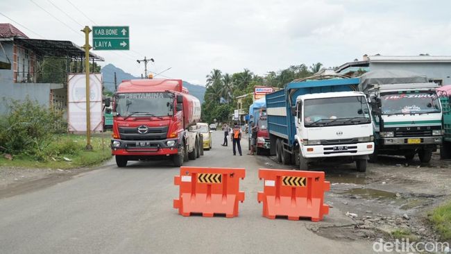 Truk 6 dan 10 roda dibatasi melintas di Jalan Poros Maros-Bone, tepatnya di wilayah Kappang, Kabupaten Maros, Sulawesi Selatan (Sulsel). Truk yang hendak melintas diperkenankan melintas setiap jeda 2 jam.