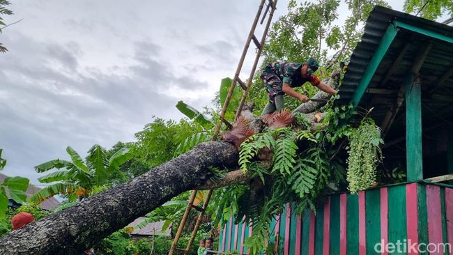 "Akibat hujan yang deras dan angin kencang rumah warga tertimpa pohon," ujar Kepala Desa Pakkasalo Andi Akbar kepada detikSulsel, Senin (29/4/2024).
