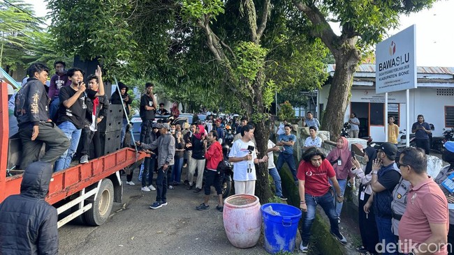 Massa menggelar aksi di empat titik pada Kamis (30/5/2024) sejak siang hingga malam. Aksi pertama kali dilakukan di Kantor DPRD Bone, kemudian berlanjut di Bawaslu Bone, Polres Bone, dan terakhir di KPU Bone.