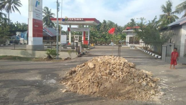Nelayan berinisial AE (49) di Kabupaten Bone, Sulawesi Selatan (Sulsel), menutup akses jalan ke Stasiun Pengisian Bahan Bakar Nelayan (SPBN) karena tidak mendapat jatah bahan bakar minyak (BBM). Penutupan jalan dilakukan dengan cara menyimpan material tanah timbunan di tengah jalan.