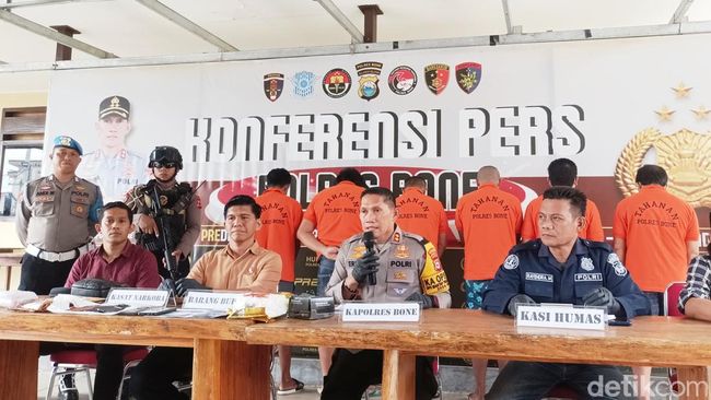 "Kami berhasil menggagalkan peredaran narkotika jenis sabu sebanyak 1.244,11 gram atau 1,2 kg. Kami juga mengamankan 6 orang dari 4 lokasi yang berbeda, di antaranya ada 2 ASN," ujar Kapolres Bone AKBP Erwin Syah kepada wartawan, Jumat (20/12/2024).