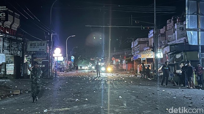 Polisi juga berteriak menggunakan kendaraan pengurai massa (Raisa) meminta massa membubarkan diri. Massa yang berada di simpang empat Jalan Jenderal Ahmad Yani sudah tidak ada namun batu berserakan di jalan raya.