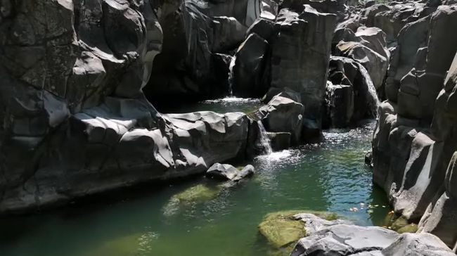 "Kalau kita lihat di sana, kondisi batuan alamnya itu tersusun batuan-batuan yang tegak-tegak, balok-balok yang tegak itu. Di celah-celahnya oleh titisan sungai membentuk aliran yang tempat mandi-mandi orang," imbuh Kaharuddin.