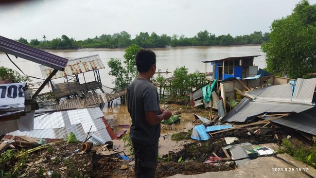 Selain rumah, ada tiga unit sepeda motor tertimbun longsor. Begitu juga dermaga di pinggir sungai ikut rusak akibat tanah di lokasi bergerak turun.