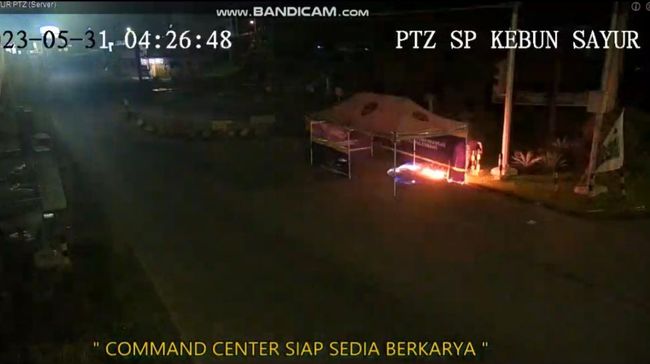 Dari rekaman CCTV yang diterima, terlihat ada satu orang diduga pelaku datang dari arah belakang pos mengendap-gedap. Dia lalu menyiramkan cairan diduga BBM dan langsung membakar pos.