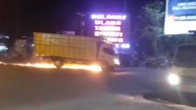 Sebuah video kecelakaan yang melibatkan truk diduga tabrak lari pemotor di Batanghari, Jambi viral di media sosial. Truk berwarna kuning itu terlihat menyeret sepeda motor yang tersangkut di bawah kolongnya hingga mengeluarkan api karena bergesekan dengan aspal.