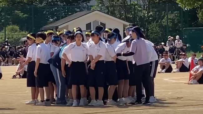 Dalam video yang diunggah di channel YouTube Lombok Japan Family, terlihat siswa-siswi SMP beraktivitas di lapangan. Mereka bermain tali dalam rangka festival olahraga. Ria, siswi berhijab asal Indonesia, berada di salah satu barisan.