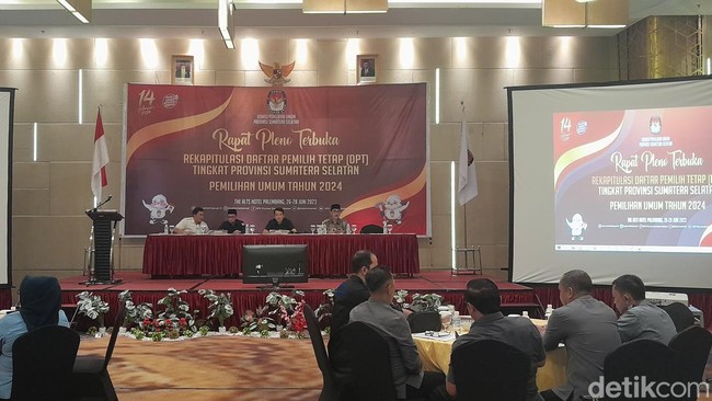 Komisi Pemilihan Umum (KPU) Sumatera Selatan (Sumsel) menetapkan Daftar Pemilih Tetap (DPT) untuk Pemilu 2024 sebanyak 6.326.348 orang. Hal itu berdasarkan rapat pleno terbuka rekapitulasi dan DPT di tingkat Sumsel.