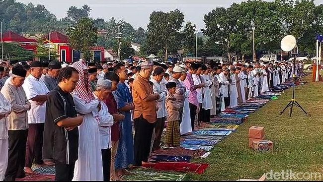 Pantauan detikSumbagsel di Lapangan Kalpataru, Kecamatan Kemiling, Bandar Lampung. Warga Muhammadiyah sejak pukul 06.00 WIB mulai berdatangan untuk mengisi shaf-shaf yang telah disediakan pihak panitia.