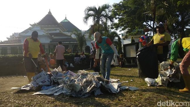 "Sekitar 2-3 ton koran sampah yang harus kami bersihkan di pelataran Masjid Agung ini," kata Rahmat.