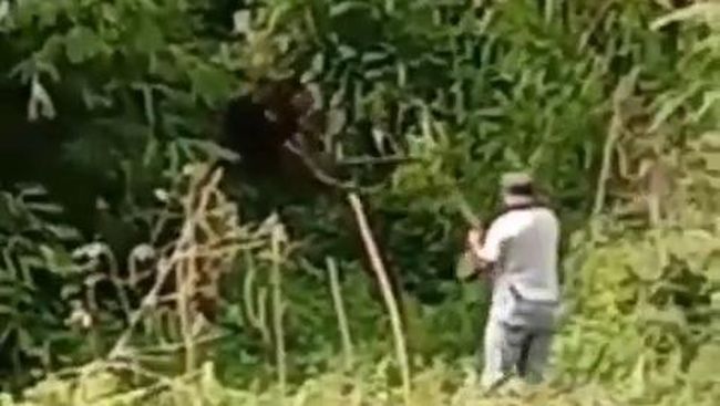 Beruang Diserang Warga dengan Kayu dan Bambu