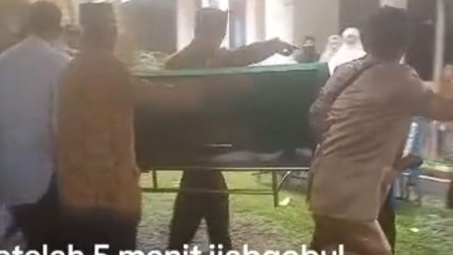 Dalam video itu terlihat mobil jenazah berwarna hitam masuk ke halaman rumah yang dijadikan lokasi resepsi pernikahan. Terdengar sayup-sayur tangis di balik video tersebut.