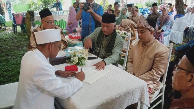 "Kehadiran mempelai wanita tidak diwajibkan hadir jadi akad nikah tetap dilaksanakan di rumah mempelai perempuan," ungkap dia.