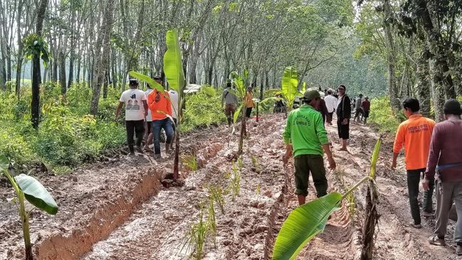 Warga bercocok tanam puluhan pohon pisang di jalan rusak berlumpur. Aksi ini sebagai bentuk protes kepada pemerintah.