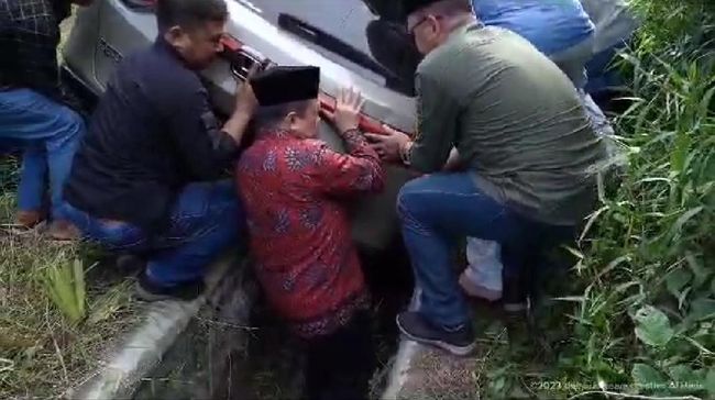 "Alhamdulillah dengan butuh waktu, dan melihat pak gubernur ikut turun dan masuk ke got sampai bantu ngangkat perjuangannya luar biasa, yang paling penting lagi penumpang selamat, lalu kami rombongan kembali melanjutkan perjalanan," jelas Erik.
