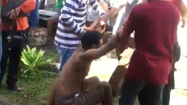 "Saya telepon polisi. Polisi tiba pukul 11.30 WIT dan bawa pelaku ke Polres Ternate dengan tangan diborgol," ujarnya.