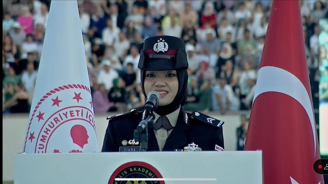 "Bapak Presiden (Erdogan) yang saya hormati, kami datang ke Akademi Kepolisian Turki ini dari 16 negara yang berbeda tetapi mimpi dan tujuan yang sama, yaitu untuk dapat melayani negara kami dengan loyalitas dan kesuksesan," ucap Nissa dalam pidatonya, dikutip dari keterangan yang diterima detikEdu, Jumat (28/7/2023).