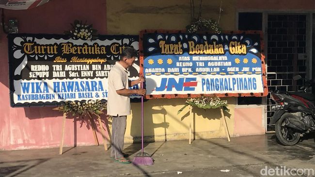 Pantauan detikSumbagsel Senin sore, rumah keluarga Redho tampak sepi. Belum terlihat sanak saudara atau teman-teman berkumpul di sana. Hanya terlihat tiga karangan bunga berisi ucapan dukacita yang dipajang di depan rumah. Di antaranya ada dari Kejari Bangka Selatan (Basel) dan SMP Negeri 2 Pangkalpinang.