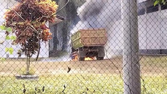Selain itu, video menampilkan gedung atau rumah terbakar, termasuk kendaraan operasional yang terparkir di halaman. Belum diketahui secara pasti siapa yang melakukan perusakan hingga berujung pembakaran aset perusahaan.