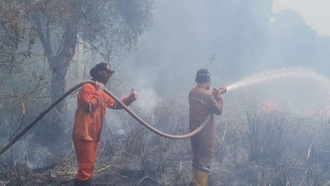 Ansori mengaku belum mengetahui pasti berapa luas lahan yang terbakar. Sebab, petugas di lapangan masih melakukan pemadaman. Untuk pemadaman sendiri, lanjutnya, tidak hanya dilakukan melalui darat tapi juga melalui udara lewat water bombing.