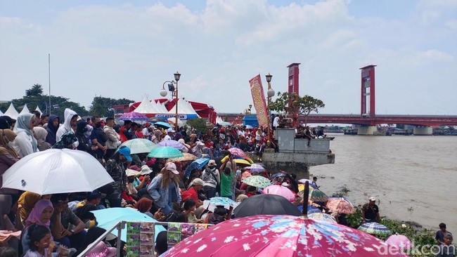 Pantauan detikSumbagsel di lokasi, masyarakat tidak hanya memadati plataran BKB. Tetapi juga di atas jembatan Ampera dan di dermaga 7 Ulu atau di sebarang BKB.