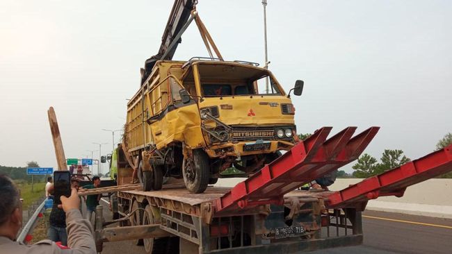 "Setelah itu, truk itu menabrak beton median jalan sebelah kanan lalu banting stir ke kiri hingga menabrak pagar pembatasan dan jatuh, terguling di semak pinggir tol," sambungnya.