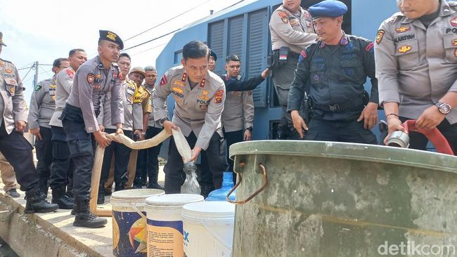 "Saya bersyukur, dan mengucapkan terima kasih kepada Pak Kapolda karena sudah 3 bulan air kering. Kondisi sumur airnya kering, kalau pun ada paling 3 cm itu pun berlumpur. Untuk sehari-hari kami beli air galon. Satu galonnya Rp 3 ribu," ujar Sujiana, warga setempat.