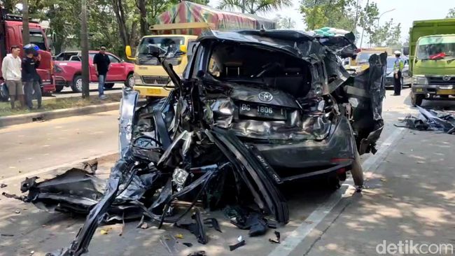 "Saat itu saya posisi di belakangnya, Kak. Kayaknya mobil Innova Reborn itu ngebut, nabrak bagian belakang dumptruck hijau dulu. Nah saat oleng, dia nabrak lagi kena truk satunya lagi, truk kuning. Mobilnya sampai muter-muter," bebernya.