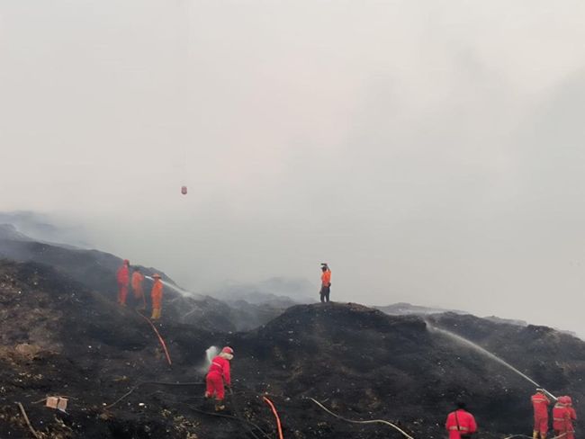 "Kebakaran ini terjadi bukan alamiah tapi ada aktivitas api sehingga terjadi kebakaran. Dan semua yang ada di sini merupakan sampah murni yang terdiri dari sampah plastik dan karet sehingga ada gas metan yang memicu terjadinya titik api dan api terus menyala dan menjalar," ujarnya.